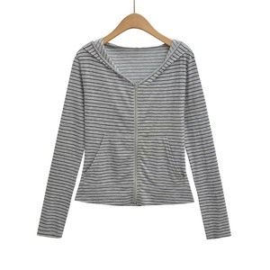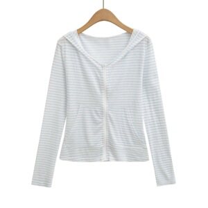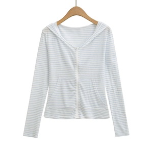 2025新款慵懒风条纹拉链长袖连帽开衫外套女百搭休闲上衣