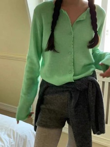 韩国东大门2025简约纯色羊毛针织开衫毛衣外套