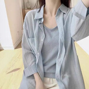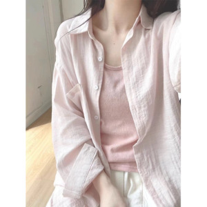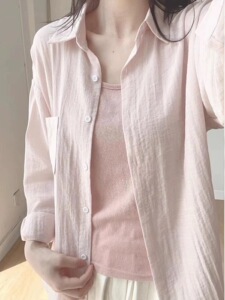 奶油粉薄款防晒衣衬衫天丝夏季小个子吊带裙外搭开衫薄纱衬衣