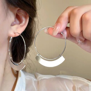 欧美夸张银色扇形流苏耳圈2025新款小众设计耳环时尚气质百搭耳饰