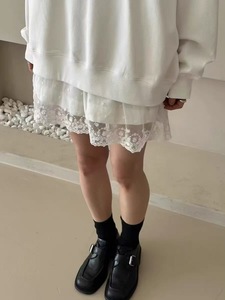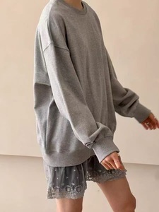 2025夏季假两件蕾丝拼接卫衣纱网边简约宽松长袖纯色上衣休闲百搭