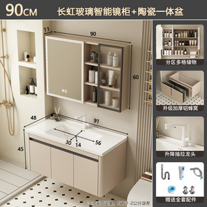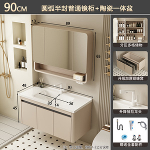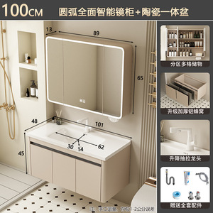 新款浴室柜一体陶瓷盆加厚蜂窝太空铝洗脸盆柜组合卫生间洗漱台盆