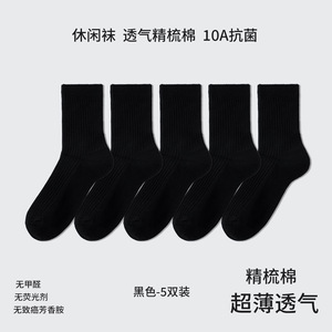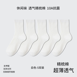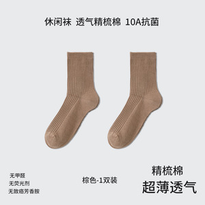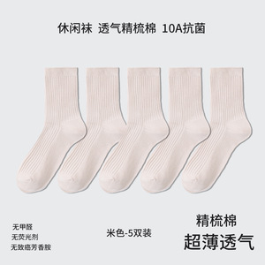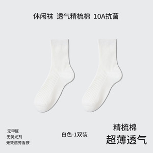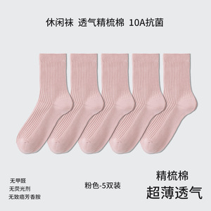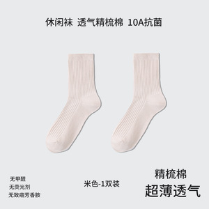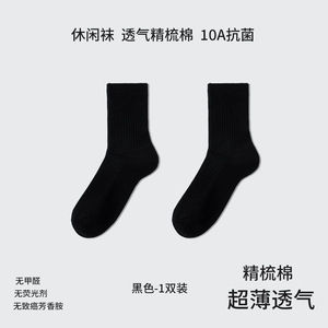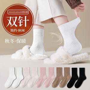 全棉袜子女秋冬纯棉双针黑白条纹简约无骨吸汗保暖女士休闲中筒袜