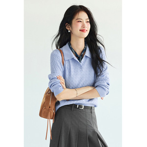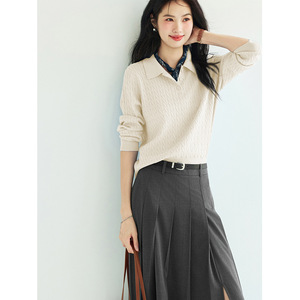 POLO绞花套头针织衫女2025秋季新款百搭休闲毛衫女1G8931871