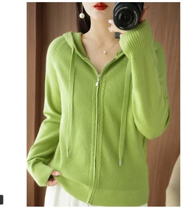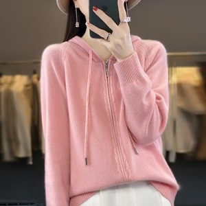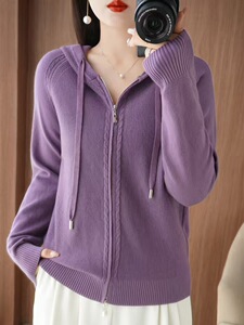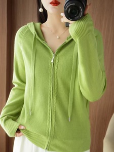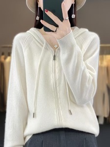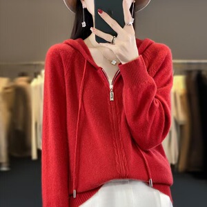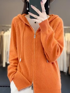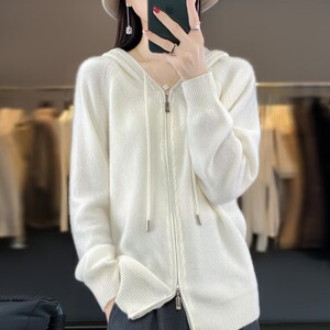 2025秋冬新款针织衫开衫韩版女装混纺羊毛帽衫双拉链连帽毛衣外套