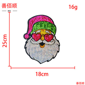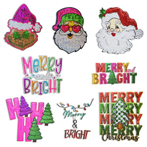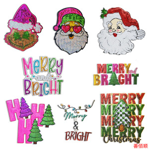 大号圣诞主题亮片刺绣贴片套装 - 圣诞老人、精灵与祝福语装饰"