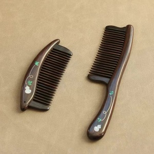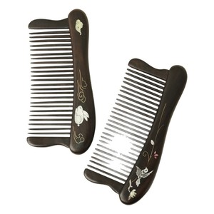 发梳紫光檀镶嵌铜镙钿贝国风梳子商务礼品头饰批发