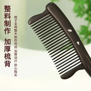 紫光檀插齿带柄木梳(镶宝葫芦)