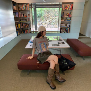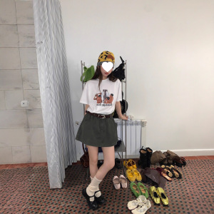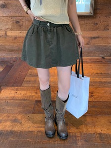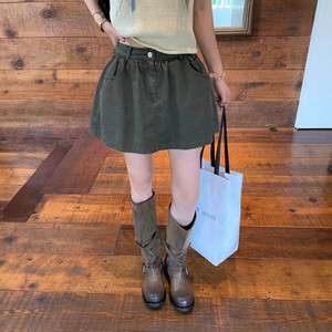 美 甜酷自成一派水洗工艺复古绿色褶皱工装半裙