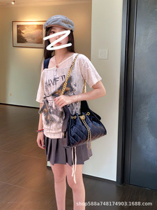 小香风25C中古水桶包女时尚真皮菱格链条流浪包大容量单肩托特包
