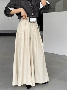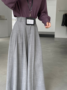 江左 高腰压褶女款阔腿裤大摆西装裤2025秋新款宽松长裤子 1653