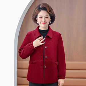 2025新款妈妈秋装外套休闲洋气中老年人女短款翻领春秋夹克衫上衣