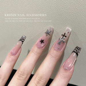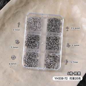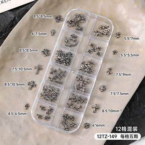 6格银色克罗心美甲饰品网红爆款十字架金属五角星diy指甲装饰配件