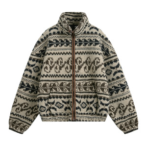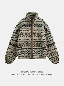 民族风提花重磅质感摇粒绒夹克男秋冬款短宽廓形休闲保暖复古外套