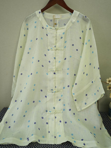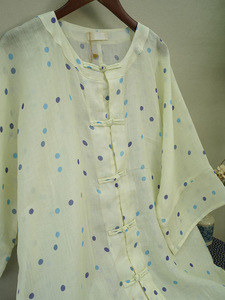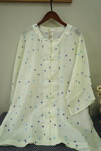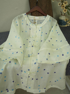 2025夏季新款 文艺复古苎麻印花单层圆领手工盘扣禅意茶服389048