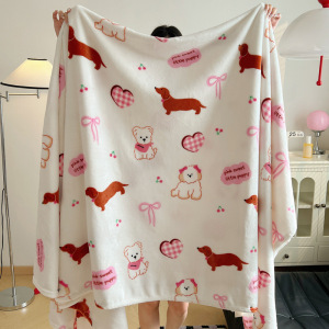 KK*波点腊肠狗-*多功能牛奶绒毛毯