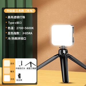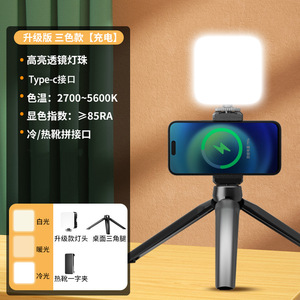 升级版【三色光】可充电送充电线+桌面三脚架+单机位手机夹