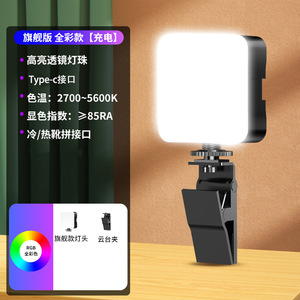 升级版【三色光】可充电送充电线+桌面三脚架+云台夹+单机位手机夹