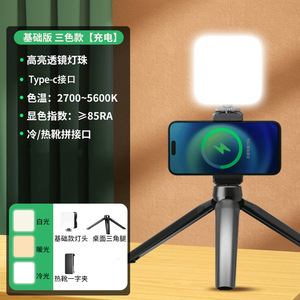 基础版【三色光】可充电送充电线+桌面三脚架+云台夹+单机位手机夹