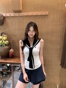 GS.GOOD START-韩系女休闲减龄海军领无袖针织背心G7071(配披肩)