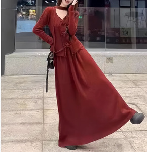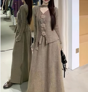 复古高级感针织连衣裙子套装2025秋冬新款女气质韩版毛衣一整套潮