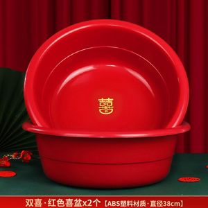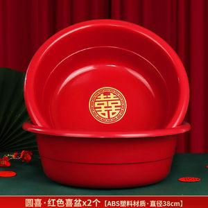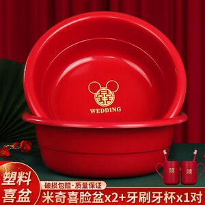 喜盆结婚透明洗脸盆婚礼用品大全女方陪嫁套装婚庆塑料红盆喜庆