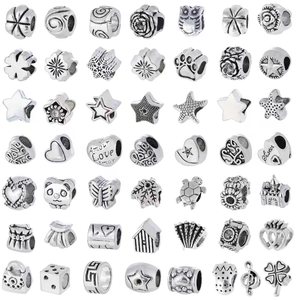 简约百搭合金银色五角星串珠手链项链穿孔星隔珠散珠diy饰品配件