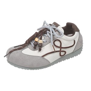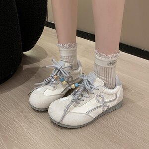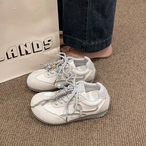 丑萌大头德训鞋女2025秋季新款百搭休闲串珠女鞋学院风系带阿甘鞋
