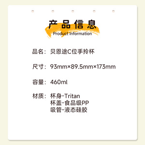 贝恩途新款tritan水杯带吸管便携塑料杯男女生高颜值杯子儿童水杯