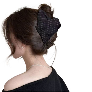韩式气质波点蝴蝶结抓夹温柔气质御姐范布艺三角发夹女式时尚头饰