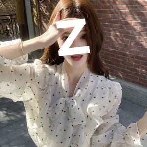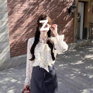 2025新款法式高级感荷叶边波点衬衫女春季设计感绑带宽松别致上衣