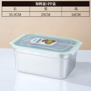 保鲜盒食品级不锈钢方形冰箱专用密封带盖防尘便当饭盒加深大容量