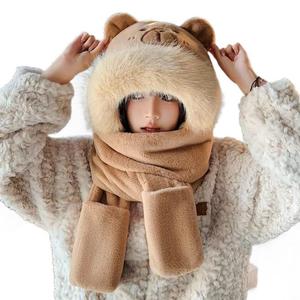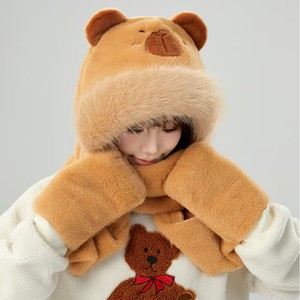 ZX-保暖帽可爱熊猫帽子围巾手套一体三件套装卡皮巴拉二三件套