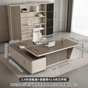 【升级E0级环保板】2.4米老板桌+老板椅+2.4米文件柜【免费送装】