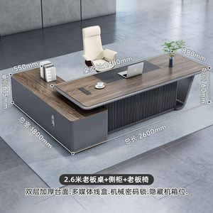 【升级E0级环保板】2.6米老板桌+老板椅【免费送装】