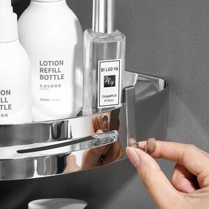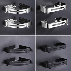浴室置物架不锈钢三角卫生间免打孔收纳架酒店转角架壁挂黑色方架