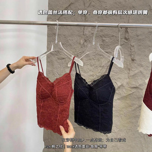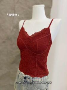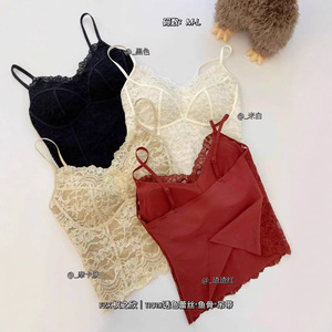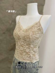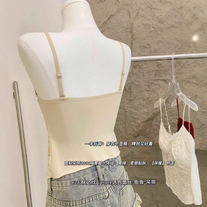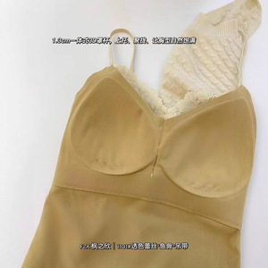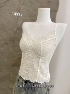 枫之欣1101法式透色蕾丝“鱼骨线条”收腰无痕磨毛固定杯吊带背心