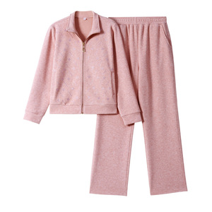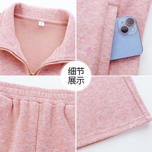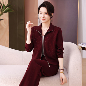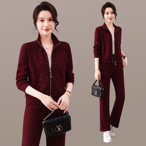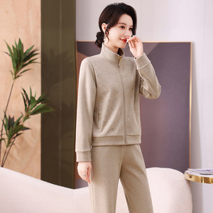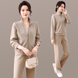 2025年秋季新款时尚休闲运动套装女中年妈装立领开衫直筒裤两件套