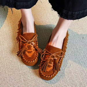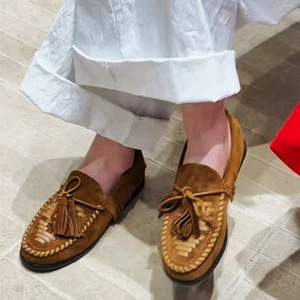 2025春秋季新款复古流苏乐福鞋男款一脚蹬平底软皮休闲鞋大码鞋