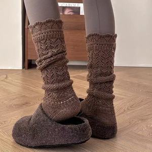 秋冬新款镂空羊毛堆堆袜重工保暖针织叠穿中筒袜日系甜美百搭袜子