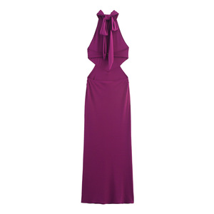 PB&ZA女装2025年秋季新款 名媛风镂空褶皱挂脖领长连衣裙5584304