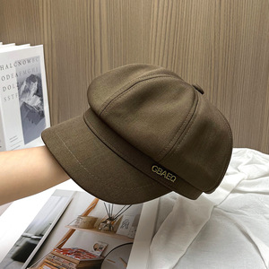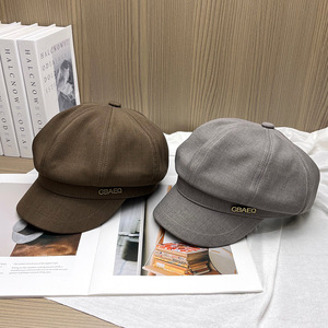韩版金属字母八角帽女显脸小百搭时尚贝雷帽气质英伦风鸭舌报童帽