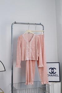 睡衣女秋冬季新款金丝绒长袖开衫套装可外穿高级感加厚保暖家居服