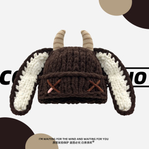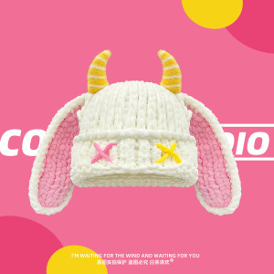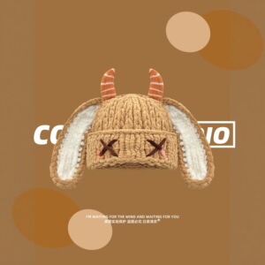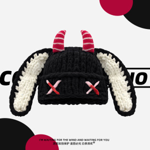 秋冬毛线帽子男女可爱甜酷风小恶魔耳朵搞怪牛角加厚保暖针织帽潮