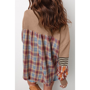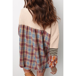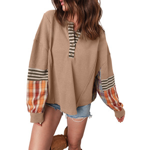 跨境热卖秋冬新款套头卫衣女欧美休闲百搭宽松格纹长袖上衣女