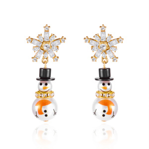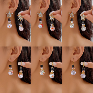 跨境欧美时尚圣诞系列镶钻雪花珍珠帽子雪人圣诞耳环百搭合金耳饰