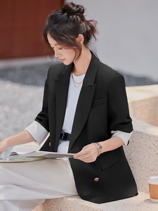 2025春秋新款韩版黑色休闲小西服气质宽松西装职业百搭简约外套