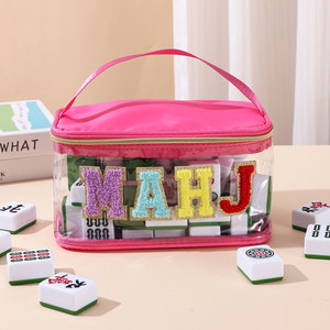 跨境爆款透明PVC手提麻将包化妆包个性字母便携大容量现货速发