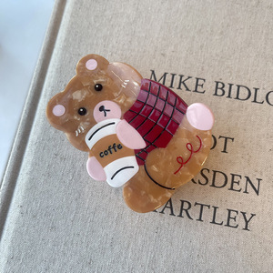 新款小众设计小熊醋酸抓夹高级感卡通抱熊盘发鲨鱼夹子发夹女发饰