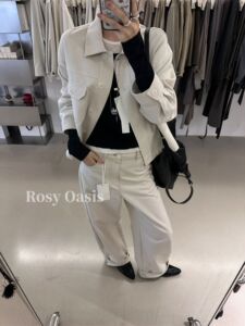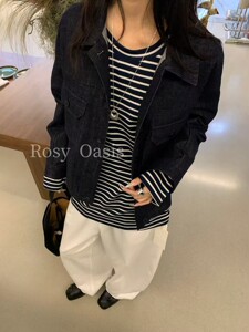 秋季新款休闲牛仔外套一简约翻领宽松纯色夹克上衣沐泽女装Y8765